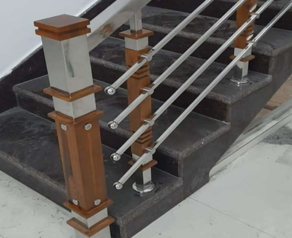 Samnantools 3 Feet Stainless Steel Wooden Master Pillar with Panel Design, Durable Silver Finish for Balcony Railing, Home, Hotel, and Shop Decor – Modern and Weather-Resistant Decorative Post for Indoor and Outdoor Use