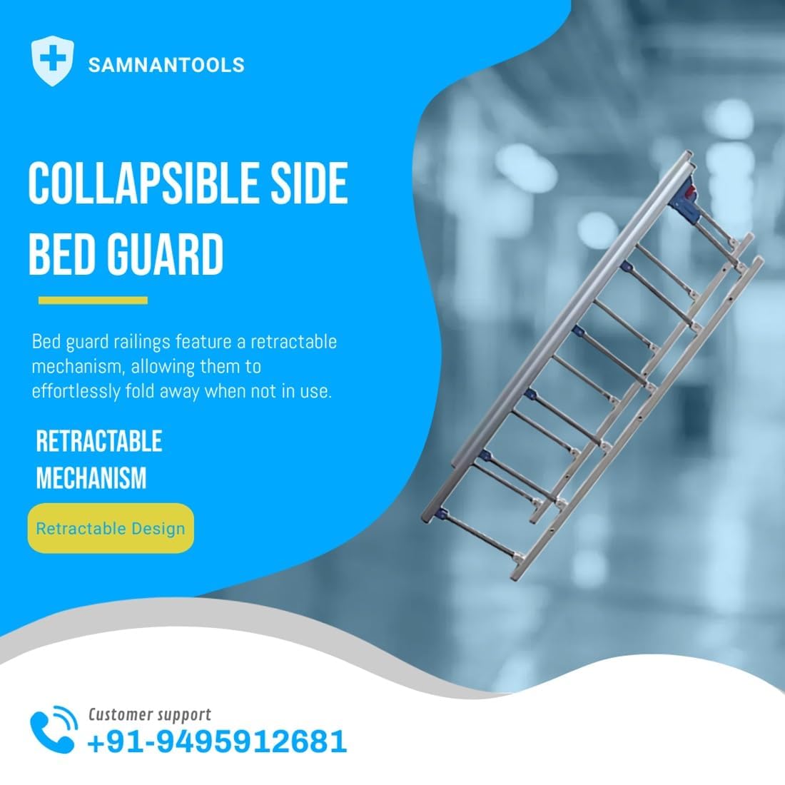 The Zenith Collapsible Side Railing Aluminium ensures the safety and support of patients in hospital beds. Made from high-quality aluminium, it is durable and easy to install.
