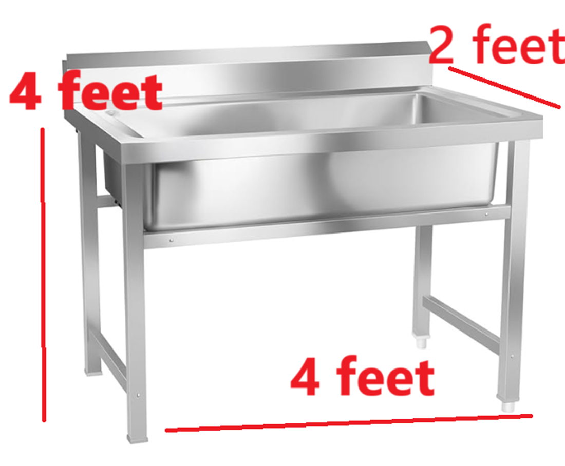 Samnantools Single Bowl Pot Wash Sink Unit | Commercial Kitchen Wash Basin with Splash Guard & Under Cross Support | Heavy-Duty Hotel & Restaurant Sink