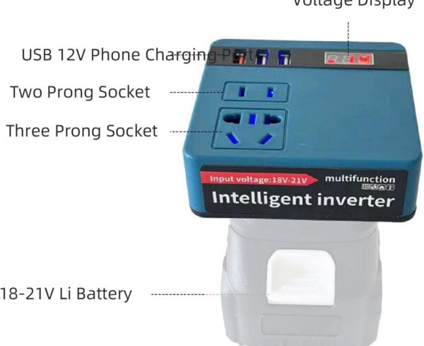 Samnantools 200W DC 18V–21V Outdoor Battery Converter – Portable DC to AC Inverter with Dual USB, LED Display & AC Outlet for Charging Electronics – Battery Not Included