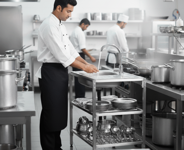 Samnantools Stainless Steel Restaurant Sink with Shelf and Tap – Commercial Kitchen Sink with Faucet, Undershelf Storage & Drainboard – Heavy Duty for Hotels, Cafes & Catering Use